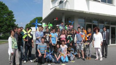En avril, les 115 élèves de 3e se sont rendus à Silfiac, une petite commune du Morbihan, située en Centre-Bretagne. Un village qui a opté pour des réalisations concrètes en terme de développement durable. Un éco-lotissement utilisant le bois, la brique, la paille, la terre, un éco-village vacances utilisant des énergies renouvelables et le clou de la visite, en lien direct avec le projet, un parc de quatre éoliennes alimentant 9 000 personnes en électricité.