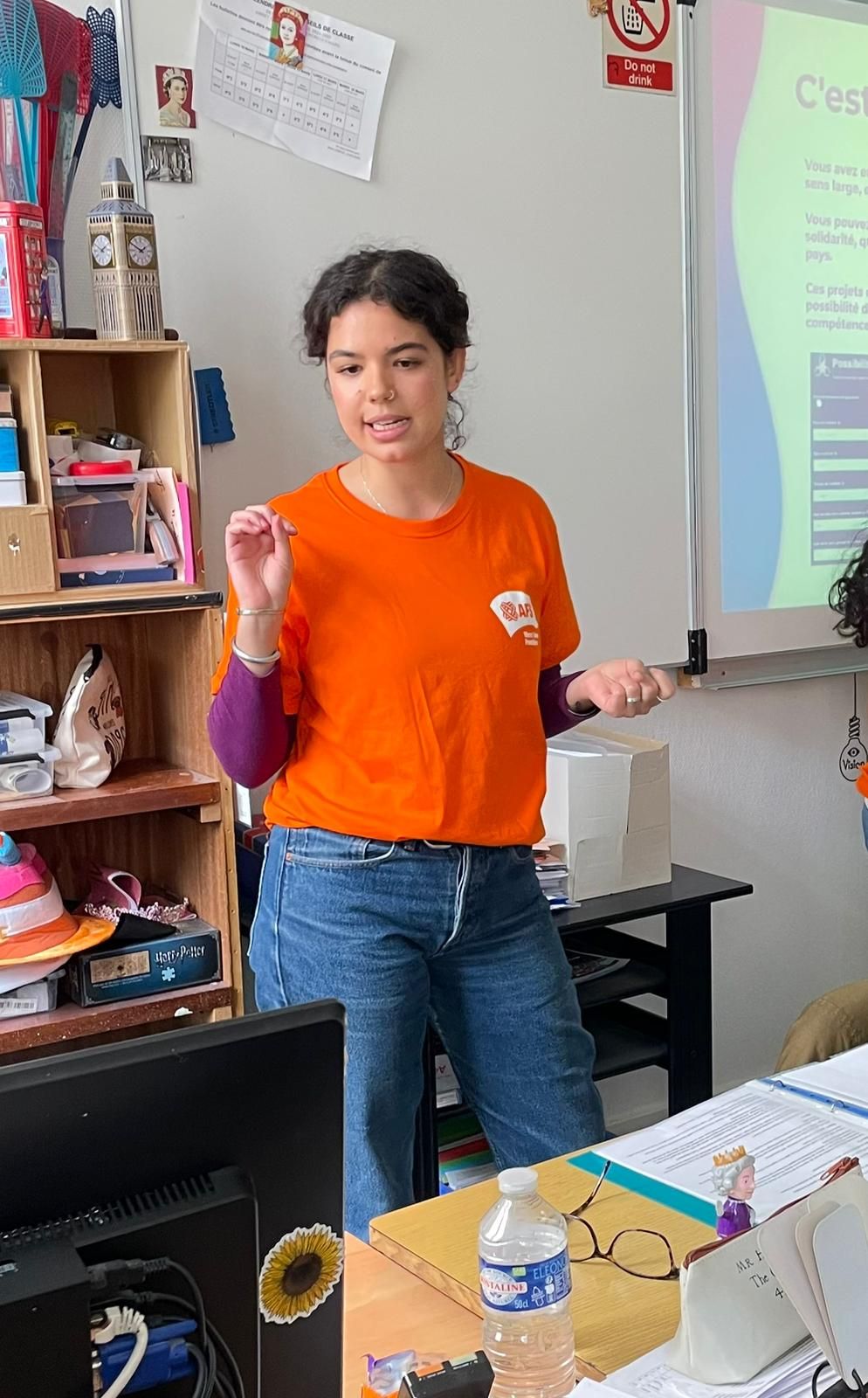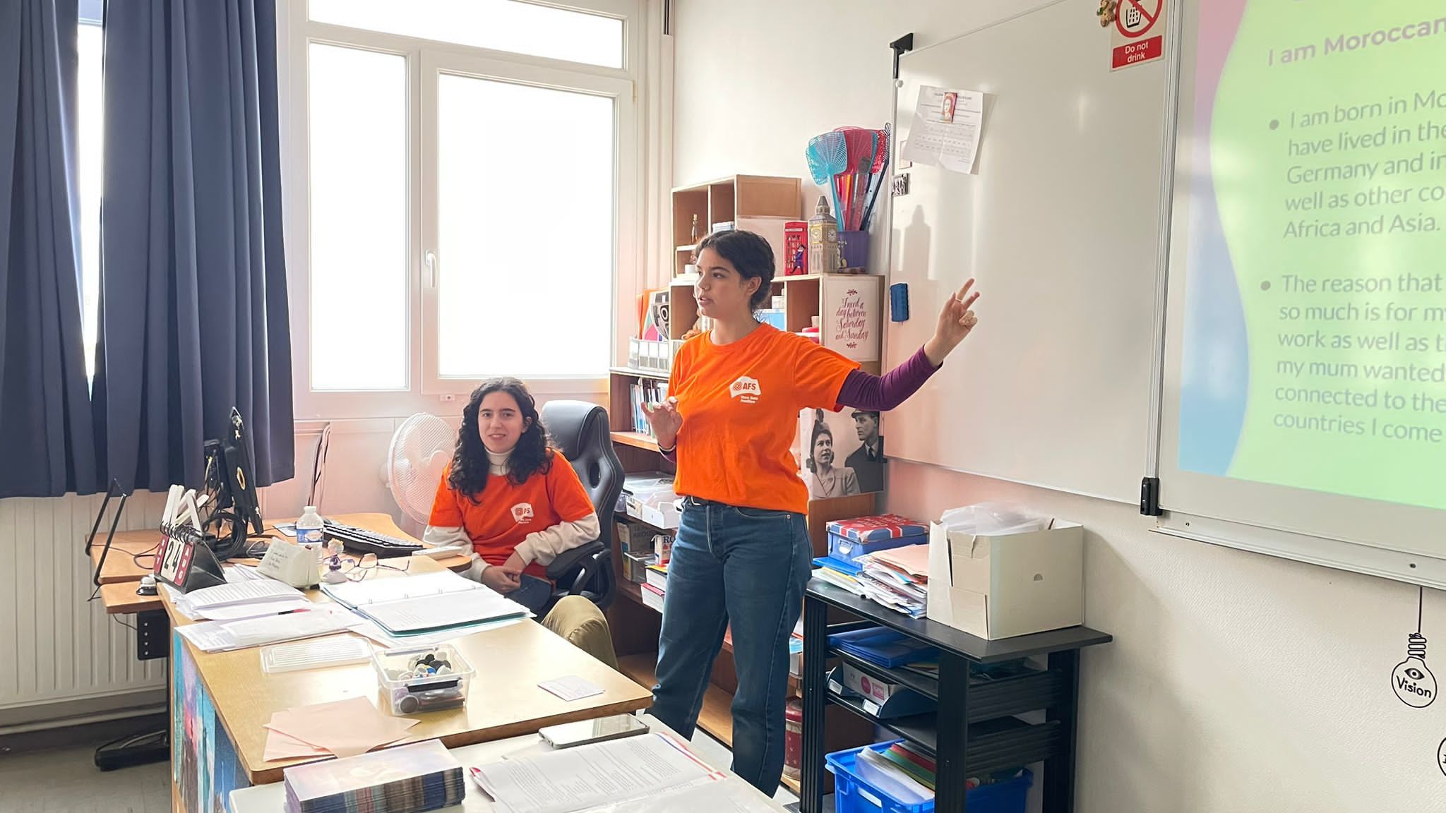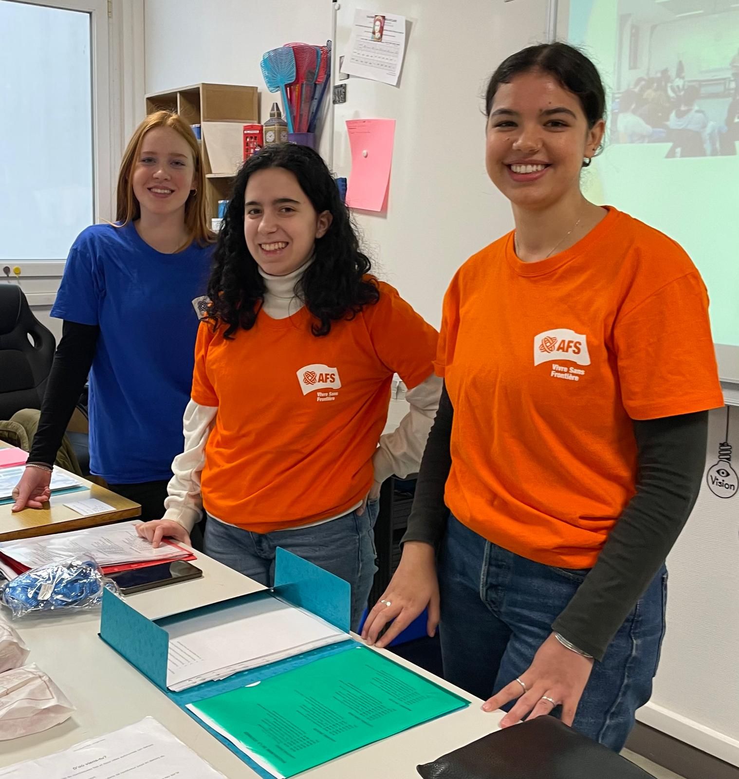 Lundi 3 et mardi 4 février 2025, Eva et Naïla, volontaires en service civique européen, ont animé 4 ateliers interculturels au collège Charles de Gaulle de Ploemeur, avec l'aide précieuse de Julie-Morgane BURTY, professeure d'anglais, Catherine Gutelle, bénévole de l'AA Bretagne (AFS-Vivre sans frontière) et ancienne enseignante du collège et Emma, une jeune autrichienne accueillie en immersion dans une famille lorientaise et scolarisée au lycée Colbert.