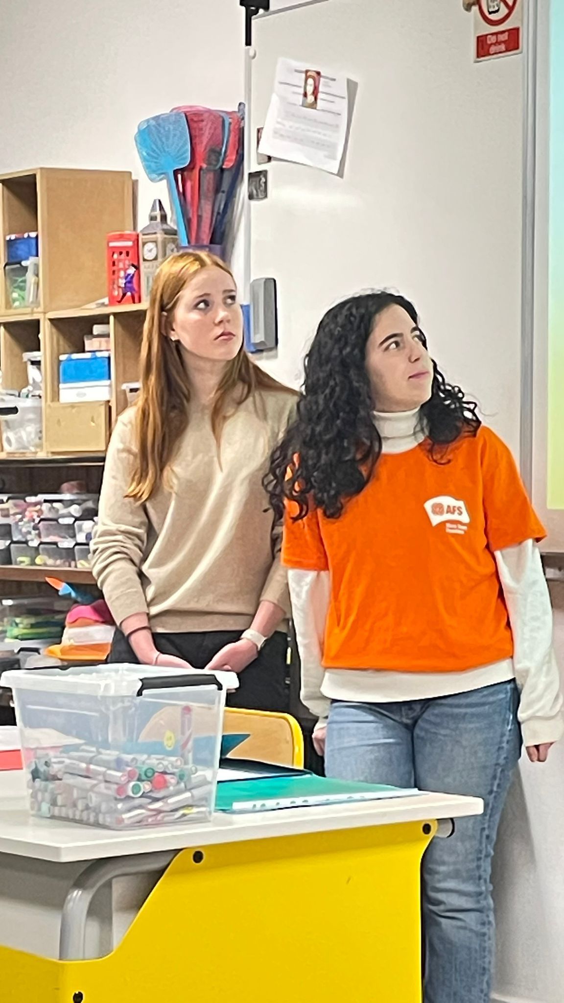 Eva et Naïla ont animé ces activités en mêlant à la fois l'anglais et le français, ce qui n'a nullement empêché la participation active des élèves qui ont apprécié le contenu des ateliers.