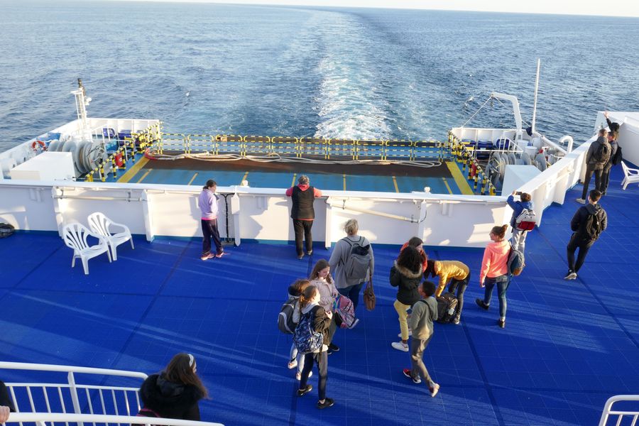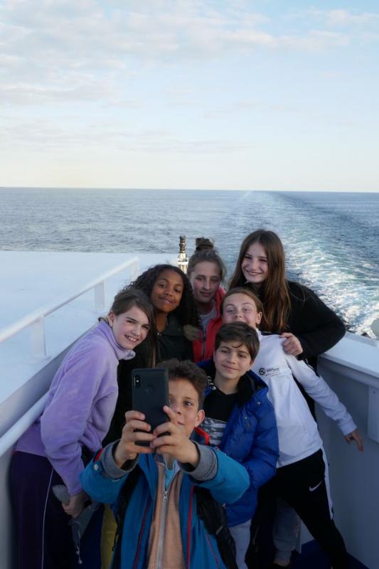 Nous sommes enfin à bord de l'Armorique après des formalités douanières très très longues et parfois stressantes pour les élèves...et leurs accompagnateurs. Les enfants prennent actuellement leurs repères sur le bateau et sont à la recherche de la "casquette du Capitaine". Le dîner est prévu à 17h30 !!