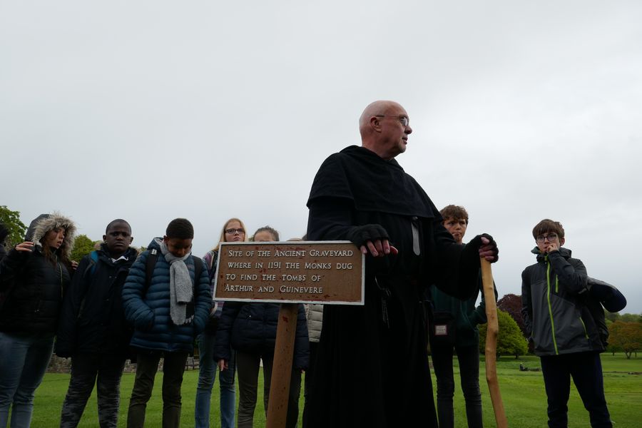 Nous sommes ensuite partis sur les traces d’Arthur et Guenièvre à Glastonbury. Une averse nous a alors trempés comme des soupes. Les élèves ont été accueillis par Brother Dave qui leur a expliqué comment vivaient les moines lorsque l’abbaye était opérationnelle. Les élèves ont été particulièrement attentifs et ils ont beaucoup apprécié la visite.
