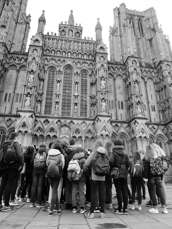 dernière soirée à Wells pour les enfants. La journée a commencé sous un semblant de soleil et s’est terminée par une douche torrentielle. Les 6e ont arpenté le marché de Wells et les quelques rues commerçantes. A 10H30, nous nous sommes tous retrouvés pour visiter la cathédrale de Wells qui a ébloui les petits et les grands. Nous sommes allés à Vicar’s Close qui est un quartier fermé attenant à la cathédrale où étaient hébergés les moines et où les musiciens de l’école de musique vivent désormais. C’était charmant.