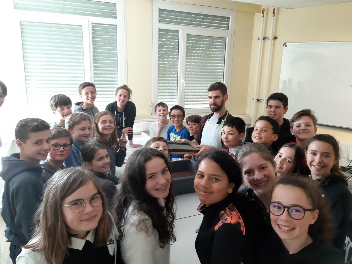 Dans le cadre des dispositifs éducatifs du Conseil départemental du Morbihan, l’association « La feuille d'érable » animée par Fabien et Sarah est intervenue auprès de nos élèves de sixième, durant les cours de technologie, afin d'apprendre aux jeunes à faire du papier recyclé à partir de vieux journaux. Superbe animation où les élèves ont été mis en action et sensibilisés à des pratiques de développement durable et d'écologie. « La feuille d'érable » intervient aussi sur le thème de l'empreinte écologique. Les questions de consommation, d'achats, de transport sont abordées de manière extrêmement ludique.