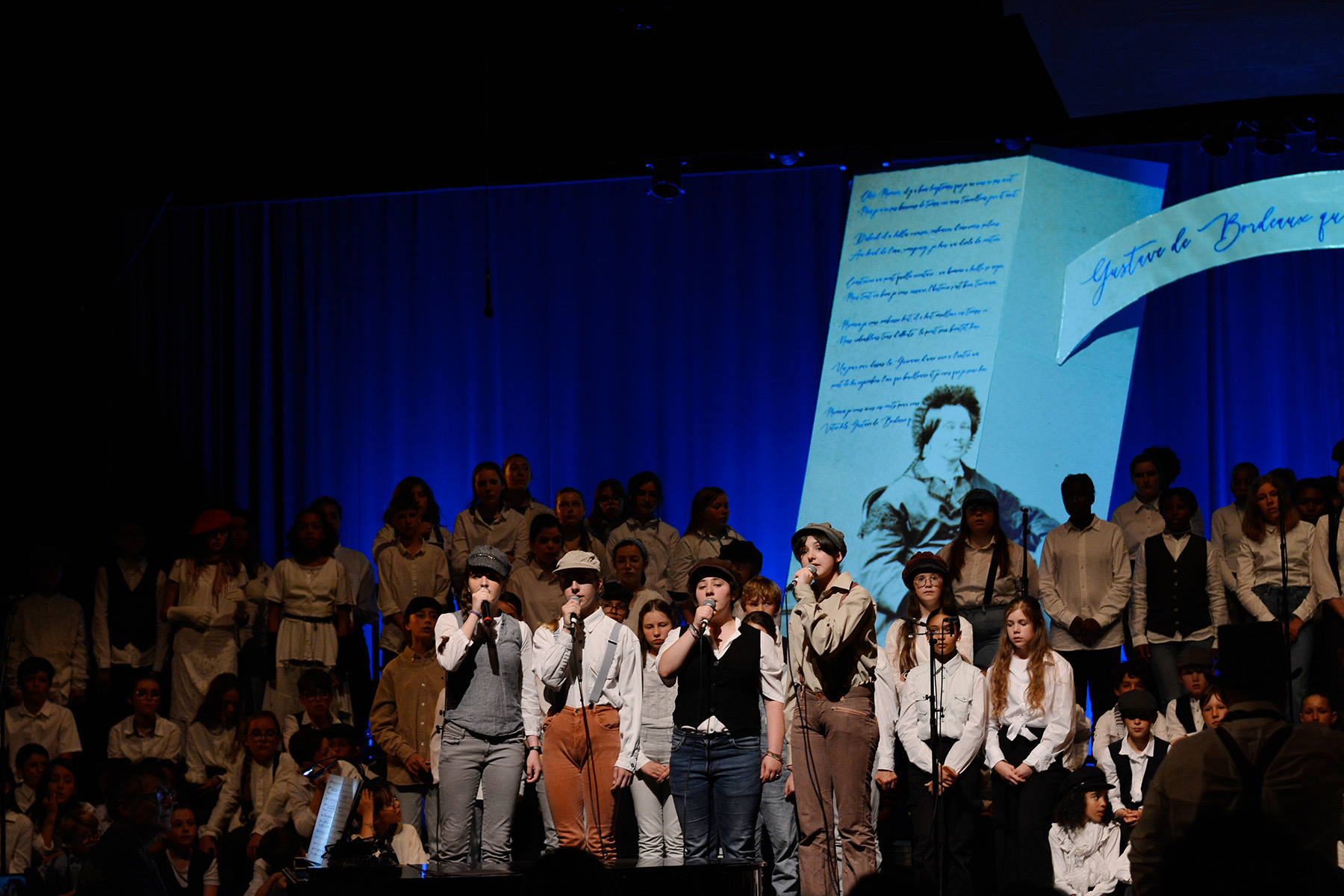 Le 5 juin 2025, c'était le concert-retour, "à la maison", avec une version revisitée (et recalculée !) : "SING'IN ! 150 Choristes à Océanis". Une nouvelle aventure qui a permis de faire revivre les chansons, avec des arrangements instrumentaux cette fois, aux côtés de nouveaux camarades de c(h)œur : les chorales des collèges Les Korrigans de Carnac (56), Jules Ferry et La Villemarqué de Quimperlé (29).