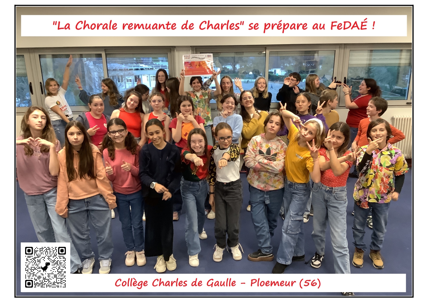 Du 2 au 4 avril, les 28 choristes de la Chorale Remuante de Charles participent à la première édition du Festival des Arts à l'Ecole (FeDAE) à Poitiers sur le site du Futuroscope, un rendez-vous national qui réunit 6000 festivaliers.