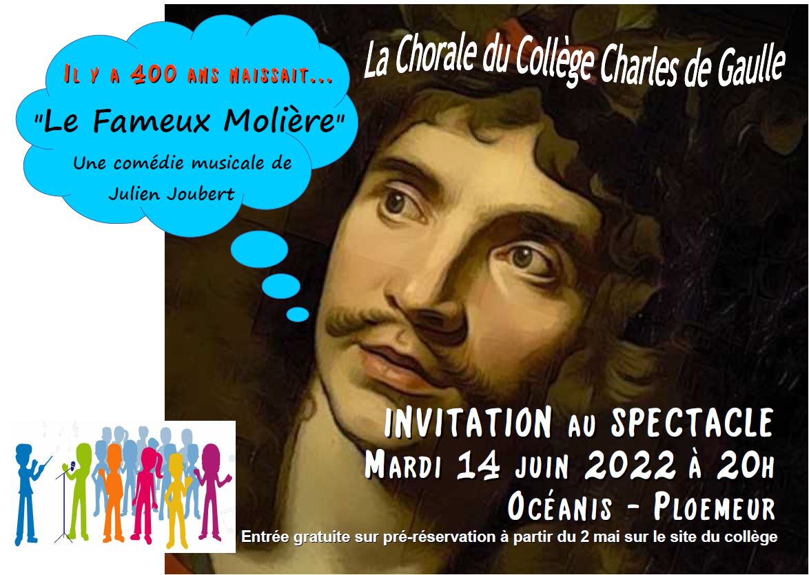 Ce spectacle vient célébrer les 400 de la naissance de l'illustre MOLIERE et se déroulera à la salle OCEANIS de Ploemeur.