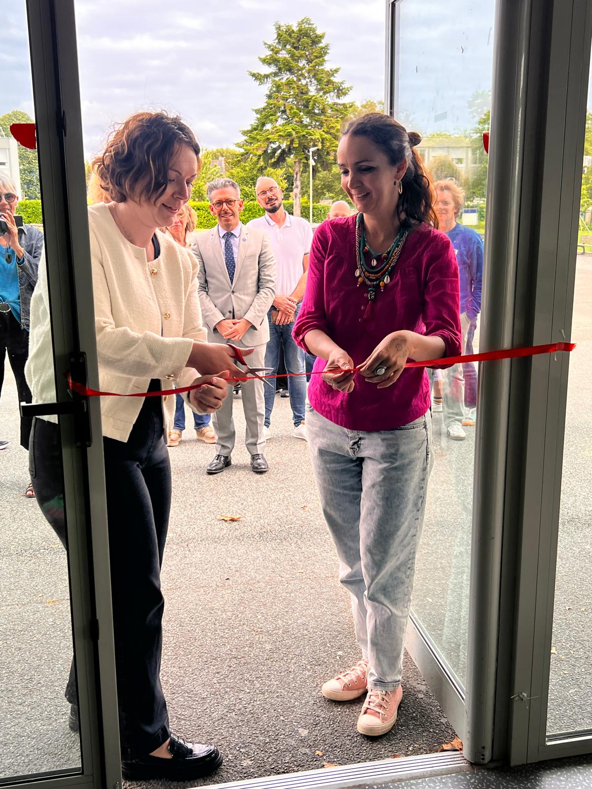 La CPE, Sara ADERIC, et l'ancienne principale, Mme LEMOYNE, ont coupé le ruban d'inauguration ensemble puisque le financement de ce projet est le résultat d'une concertation qui répondait à l'appel du Conseil National de la Refondation de l'Ecole (CNR) en 2024.